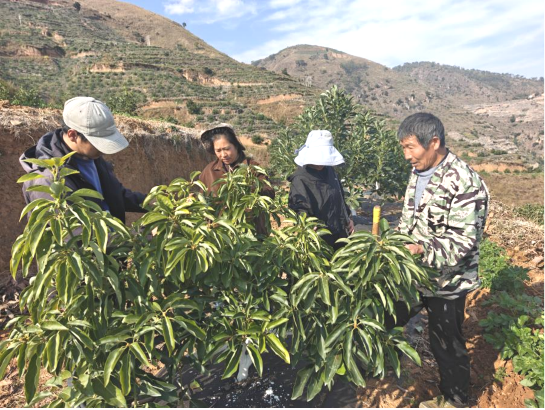 “工作队始终将培育后扶产业作为促进群众增收致富的长远之策,在沿江区域规划形成了‘4+2+N’产业布局。经反复论证,明确将牛油果作为大崇镇重点帮扶产业,以此推动产业深层次地融合发展。”会东县水电移民综合帮扶工作队队员袁兴蓉介绍,在项目的推进过程中,工作队积极协助大崇镇流转土地5000余亩,与热科院签订技术服务协议,联合省林科院等单位共同制定实施工程的方案,并指导成立会东县金江农业专家工作站。果树种植后,还定期、不定期地邀请农技专家深入现场开展水肥管理、病虫害防治等种植技术指导,致力于把牛油果产业打造为后扶产业的示范项目,形成“龙头带动、园区承载、集群化发展”的格局,为做好移民安置后扶发展这篇大文章添砖加瓦。