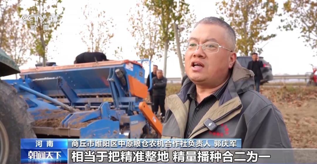 商丘市睢阳区华夏粮仓农机合作社负责人 郭庆军:相当于把精密整地、精量耕种合二为一,抢抓农时保证一播全苗,利于晚播麦培养壮苗。估计一周左右完结2万亩小麦的耕种。